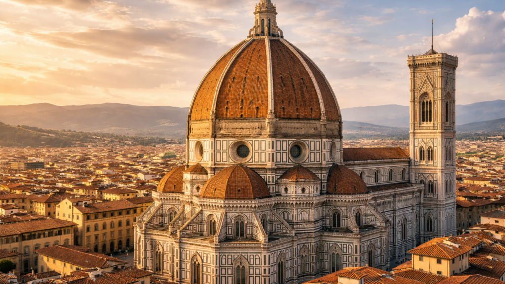 Entre os arquitetos mais importantes desse período destaca-se Filippo Brunelleschi, responsável por importantes obras em Florença, como a cúpula da Catedral de Santa Maria del Fiore. O Renascimento também valorizou a construção de palácios urbanos e vilas campestres, frequentemente organizados em torno de pátios centrais e jardins.