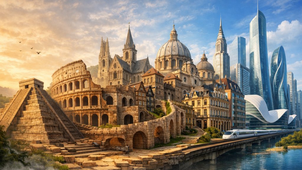 A história da arquitetura revela como cada civilização expressou sua visão de mundo por meio das construções. Desde o Egito Antigo até os movimentos arquitetônicos modernos, os edifícios refletiram valores religiosos, políticos, sociais e tecnológicos de cada época.