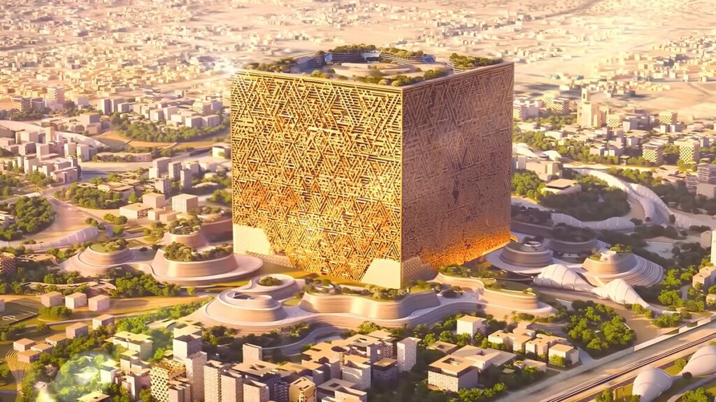No entanto, mesmo diante de projetos tão grandiosos, um novo anúncio conseguiu surpreender arquitetos, urbanistas e especialistas em engenharia ao redor do mundo. Trata-se do Mukaab, também conhecido popularmente como “The Cube”, um megaprojeto arquitetônico que será o centro do novo distrito urbano de New Murabba.