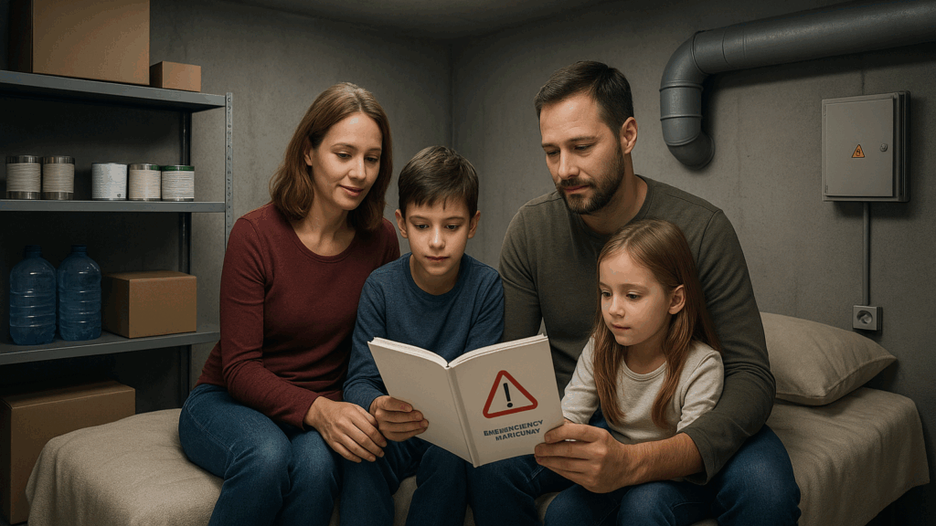 O primeiro passo nesse processo é estabelecer um plano familiar de emergência claro e acessível. Esse plano deve responder, de forma objetiva, a questões fundamentais: quando o bunker deve ser acionado, quanto tempo há para mobilização, quem será responsável por reunir documentos e suprimentos e como será feita a comunicação com o mundo externo. Mais do que um documento técnico, esse plano precisa ser compreensível para todos os membros da família, inclusive crianças, e deve estar disponível de forma visível dentro do abrigo. A realização de simulações periódicas, a cada três ou seis meses, é uma estratégia eficiente para consolidar esse conhecimento e reduzir a ansiedade em situações reais.