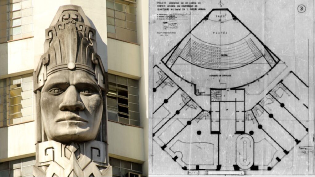Um dos elementos mais icônicos do prédio são as duas grandes esculturas de rostos indígenas na fachada, que se tornaram um símbolo visual da construção e ajudaram a consolidar sua identidade arquitetônica no cenário urbano de Belo Horizonte.