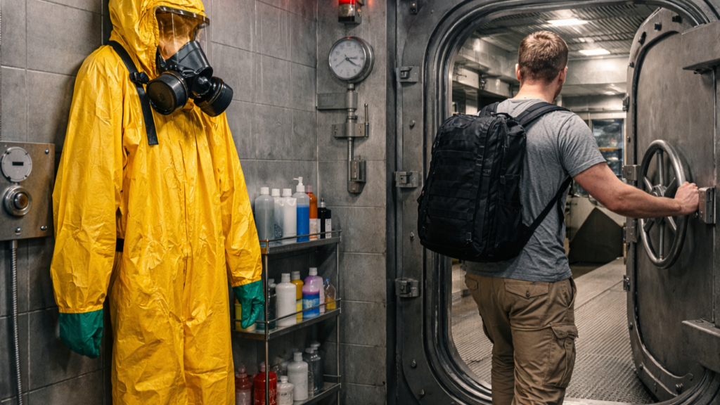 A presença de uma antecâmara de descontaminação torna-se particularmente importante em situações de risco real. Em cenários de contaminação química, por exemplo, partículas tóxicas podem aderir às roupas e superfícies externas. Sem um espaço adequado para remoção e higienização dessas partículas, o interior do bunker poderia rapidamente se tornar um ambiente contaminado.