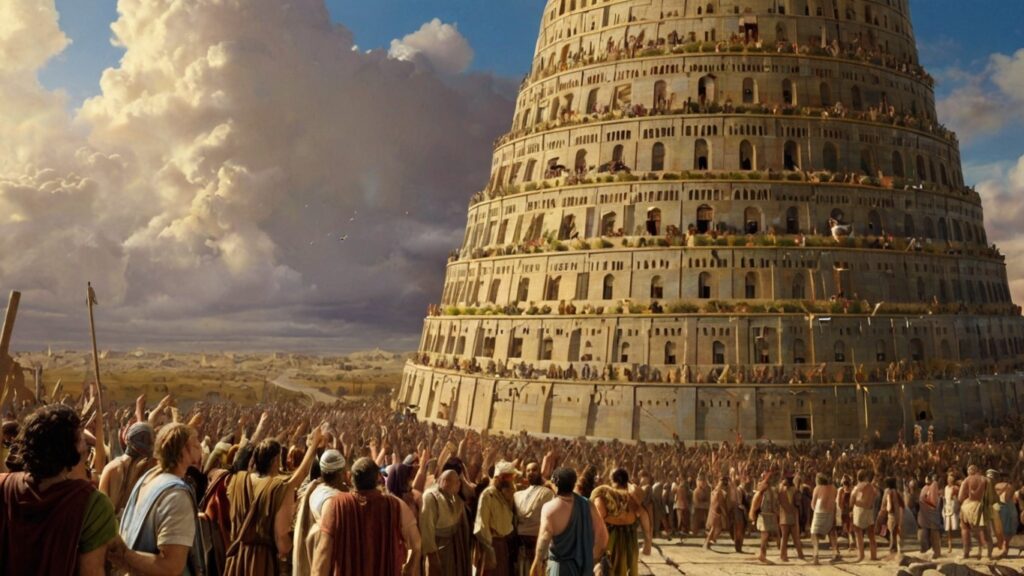Segundo a narrativa, todos os povos falavam a mesma língua naquele período. Aproveitando essa unidade linguística e cultural, decidiram fundar uma cidade e construir uma torre monumental que alcançasse os céus. O objetivo era criar um símbolo de poder e evitar que a população se dispersasse pelo mundo.